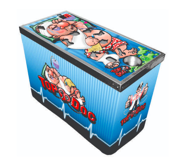 Top Doc is an electromagnetic giant operation game. The idea of the game is to remove the body parts using the electromagnetic wand incurring as few penalty points as possible. Every time the wand or body part touches the edges the magnetic power is cut, dropping the part back into the game, and a penalty point is incurred on the automatic scoring.