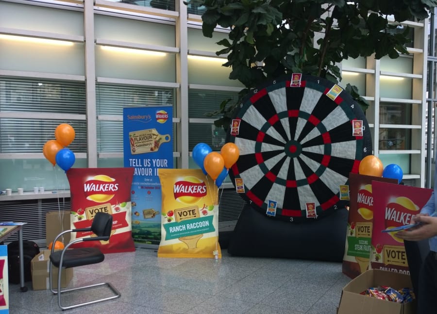 Our giant inflatable dartboard stands approx 9ft tall and comes complete with velcro throwing darts.